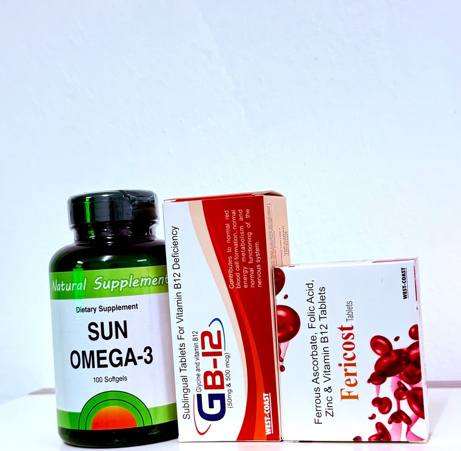 • علبة أوميجا - 100 كبسولة. • علبة بي توليف - 100 كبسولة. • علبة حديد - 30 كبسولة.
